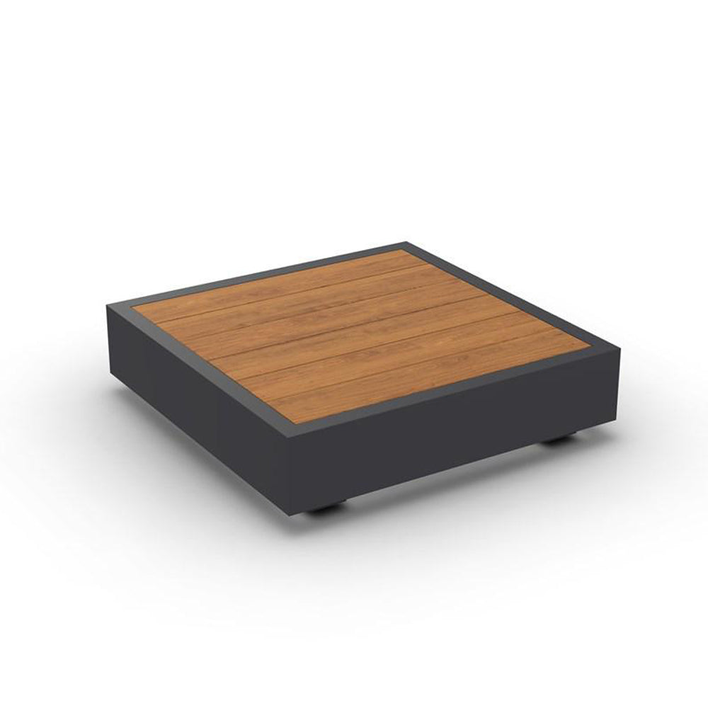 The aluminium frame has a stripped back, modern style for contemporary outdoor spaces. Cutting-edge technologies are used to create high-quality material with a smooth, flawless finish. The matching garden coffee table includes a hardwood teak slatted top that sits into the aluminium frame.