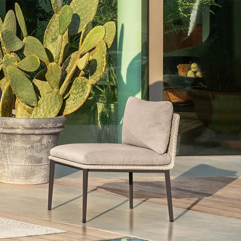 The lightness of lines and an elegant design are the key elements of the Leaf collection and of its lounge chair. The aluminium frame and the high quality of the fabrics used to upholster the soft cushions make the Leaf lounge chair suitable to a natural and contemporary context.